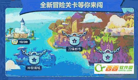四个大关卡分为:萌之岛、神秘海域、刀锋都市、魔法城堡