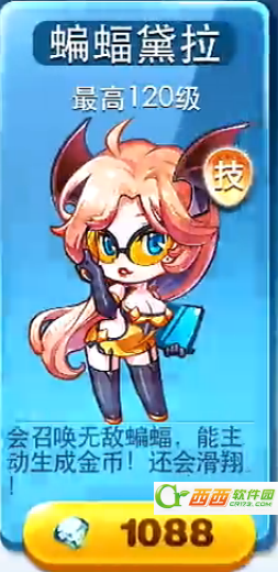 蝙蝠黛拉技能介绍:满级120级,会召唤无敌蝙蝠,还能主动生成金币,还会滑翔!