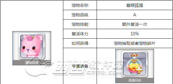 在碧眼狐狸等级打打牌20级以后,宠物就能够得到专属装备“诱惑闪光”。