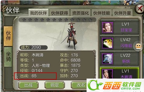 天龙八部3d玩家等级达到10级左右时会开启伙伴系统,初始时会出战一只狼伙伴。大家可进入伙伴系统获取新的宠物。每天有10次免费获取宠物机会,还可使用金币或者元宝更大几率抽取高品质宠物。获取新宠物后,可在我的伙伴里面选择要出战的宠物,点击出战即可出战战斗啦~若没有出战,可查看下当前出战的宠物是否锁定了~点击解锁,然后在选择要出战的宠物即可!