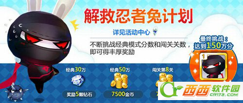 4、 终极挑战:经典模式分数达到150万分以上,当然也含150万分的哦,就可以获得一只S阶宠物“忍者兔”。