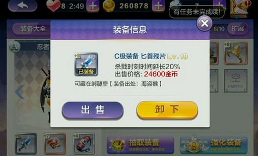 这家伙虽说是个C级装备,可是在杀戮模式下可以说是得分神器,小编之前杀戮模式得分最高的才7W,装备了匕首残片以后最少就是10W分,并且有次开了两次大招,12W分。别小看这两秒的加成