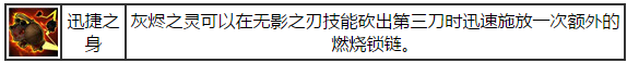 灰烬之灵可以在无影之刃技能砍出第三刀时迅速施放一次额外的燃烧锁链。