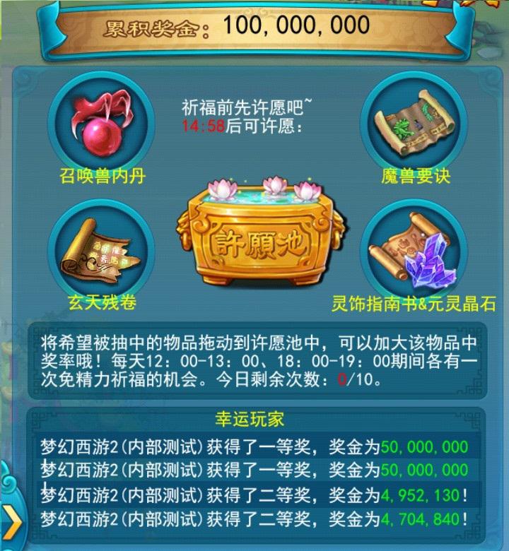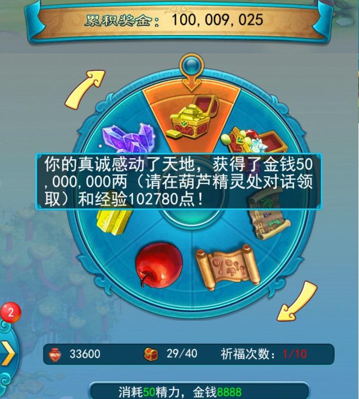 除了物品、经验之外,幸运祈福还有机会获得大量银两哦~~越多人参与祈福,则累积奖金会越来越多~~