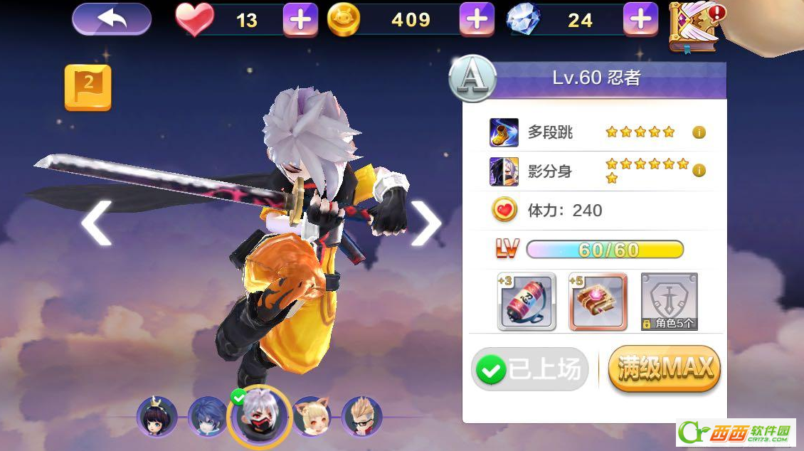 忍者前期刚开游戏尽可能的注意多两段跳,可以刷新分身,可以让前期分数超高,