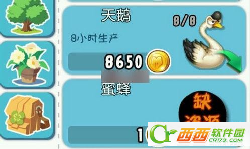 就是缺图片,大家可以仔细看,全民农场蜜蜂只需要1个金币,谁信呢!这个肯定是BUG,大家对比一下天鹅就知道了。为什么看不到蜜蜂的图片呢?自行脑补吧。