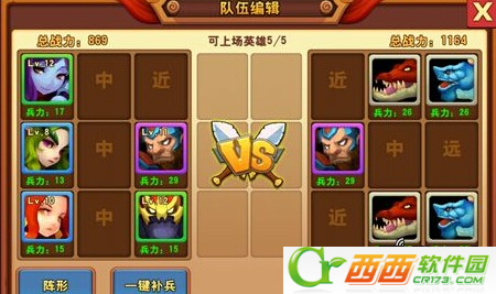每次进入副本前,玩家都可以更换英雄重新安排英雄的位置,一共有九个位置,玩家可以根据对手对阵容来布置自己的阵容,达到战斗力的有效利用,对于一些特殊的英雄,如加血的小鹿也可以特殊的安排。