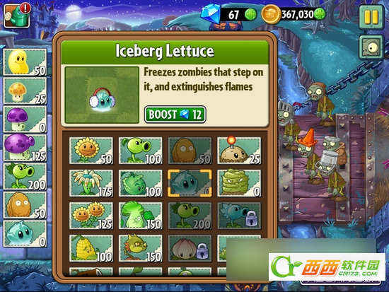 阳光豆、阳光菇、小喷菇、烟雾蘑菇、双发射手、坚果和冰冻生菜。
