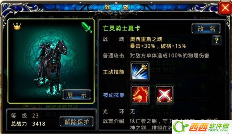 注意到亡灵骑士夏卡名字下面有个战魂,这个战魂每个宝宝会随机出现一个。