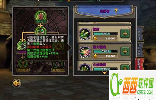 这个技能可升等级是根据你的爵位升级的。点住技能图标不放,就会提示这个技能是加什么属性的。后期升级也需要大量金币。同样优先加自己主属性。
