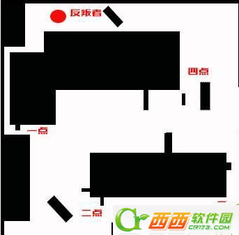 要是从“三点”进攻的话还是很容易的,直接和“四点”的敌人进行交火,在左侧又有掩体来保护“一点”方向的攻击,如果从这里攻击,胜算还会大一点。