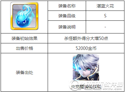 湛蓝火花是S阶角色炎觉醒满级赠送的装备,那么湛蓝火花好不好相信许多玩家都非常想知道,那么下面宁神就给大家来分析一下湛蓝火花这件装备吧!