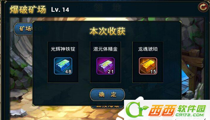 1、 每隔一段时间,玩家可在矿洞内收取奖励;
