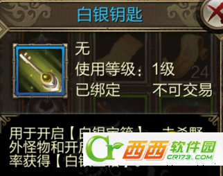 白银钥匙作用:只能用于开启白银宝箱。