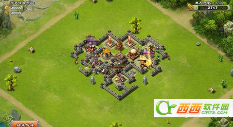 2、进行攻击前先不急着放兵,首先观察下对方的建筑分布位置,最为重要的是防御建筑,如弓箭塔,炮塔等的位置。这些是我们首先要攻打的,因为小兵只会攻击眼前最近的建筑,不会主动选择,而且防御建筑对我们的杀伤力也是最强的,所以我们要把兵放在离建筑较近的地方。