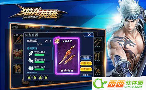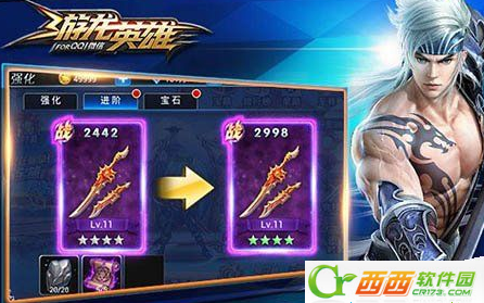 玩家可在游戏界面上点击【强化】按钮进入强化界面,并点击强化界面右边背包中的强化石以及不需要的装备,可对装备进行强化升级,强化最高等级不能超过自身角色等级,强化后的装备属性增强。