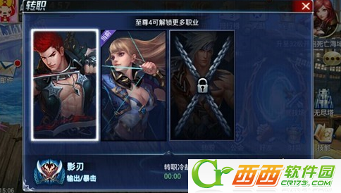 第二步:选择需要转职的职业进行解锁,点击即可,首次完全免费!左下角还有温馨提示噢,每个角色的定位都不同,可以根据自身玩法进行选择: