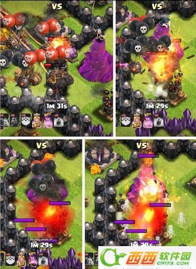 有了狗这个空中大母鸡,无疑飘来飘去的气球多了一个强有力的掩护。这样,气球在保持有原先恐怖的爆发力的同时,由于狗在前期吸引了大量火力,在清理完主要防御之后如果大部分气球仍然保持健康,可以继续慢悠悠的清理掉其余防御,进而完成打三星的目标。狗的出现,虽然并没有提高了气球这个兵种的续航能力,却解决了续航能力依然很差的气球的一个大问题,即一旦前期部队受损严重,后期轻而易举被击落。