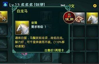 白龙马是一般的坐骑,属性就是能增加移动速度