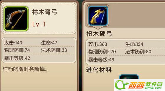从上图大家可以看到装备进化后属性增加许多,同时也能看到装备进化需要的材料及掉落。