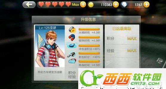 天天飞车亚瑟满级属性:
