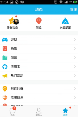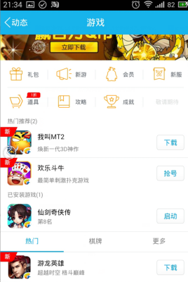 2、打开动态界面点击游戏选项