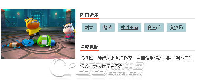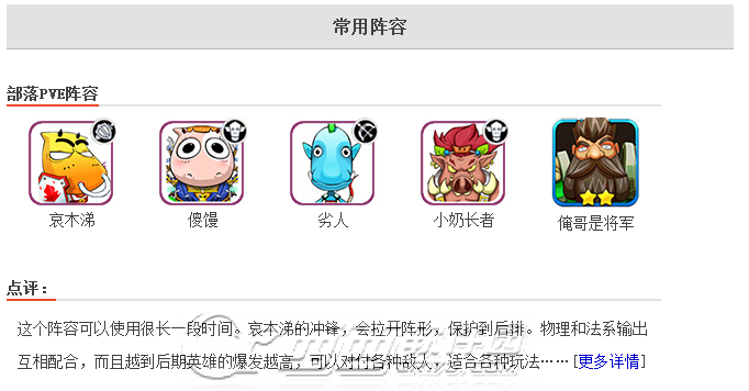 副本阵容配置比较随意,主要是旨在培养自己的英雄。普通副本选一两个强力英雄就可以通过;精英副本,则需要有一坦克、一奶妈、三个高输出英雄即可。小编推荐一标配阵容:哀木涕、傻馒、呆贼、劣人、沐丝,也是大家最常见和喜爱的英雄形象。