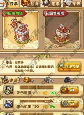 弓箭塔:单体物理攻击,攻速慢射程远克制单个法师。