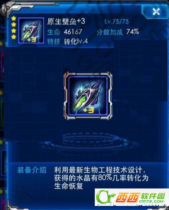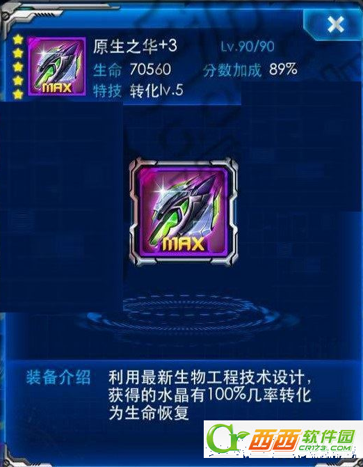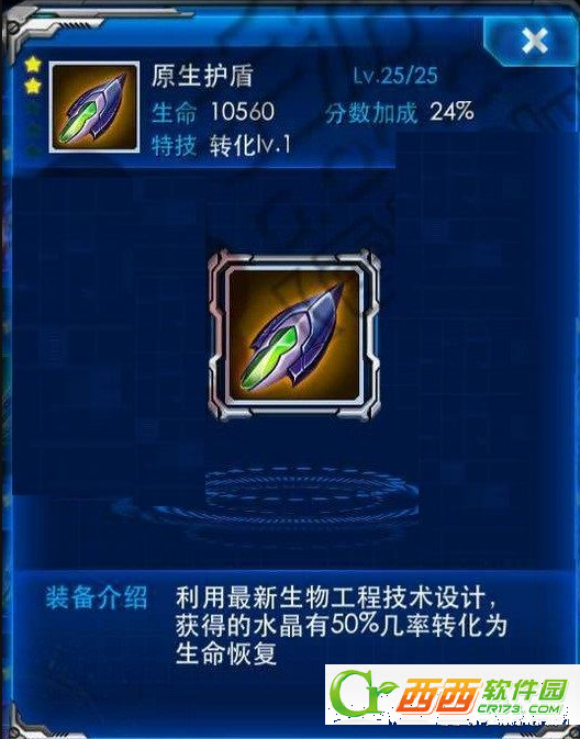 装备介绍:用最新生物工程技术设计,获得的水晶有100%几率转化为生命恢复.