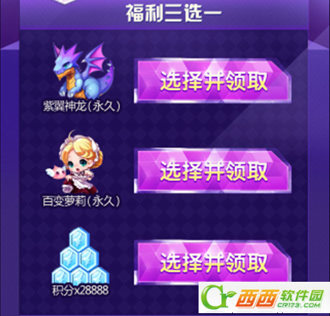 3、幸运星礼包:永久紫翼神龙、永久百变萝莉和28888积分。