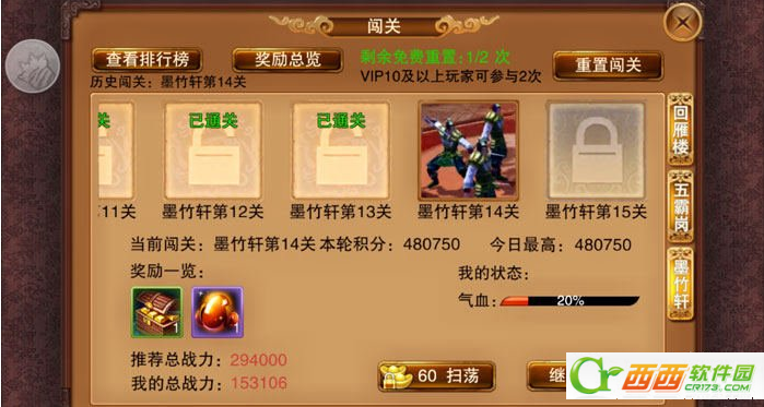 看完了以上的攻略之后相信墨竹轩通关就指日可待了,不过除了玩家们自身的角色强力之外,身边陪伴战斗的侠客也不能太弱小,否则不会起到什么作用!