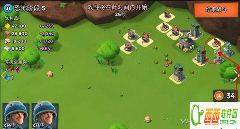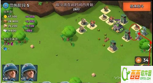 只要将红圈中的火箭打掉就OK啦,如果你能量不够就先从左边开始打杂物箱子,这样能积攒能量,就可以轻松的打掉防御了,最后只要将几个迫击炮打掉之后就能过关啦。