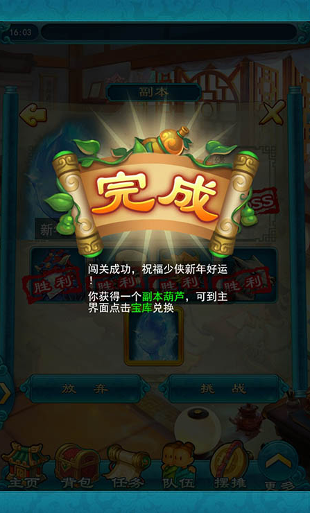 3、副本顺利通过获得宝贝葫芦,赶紧去开启吧!