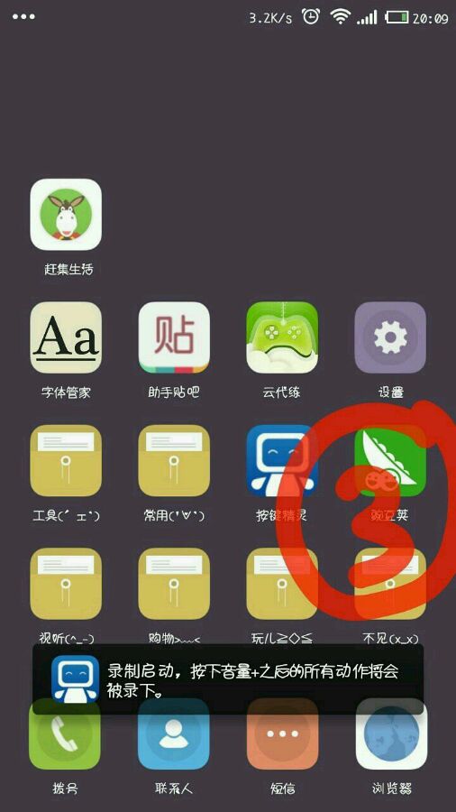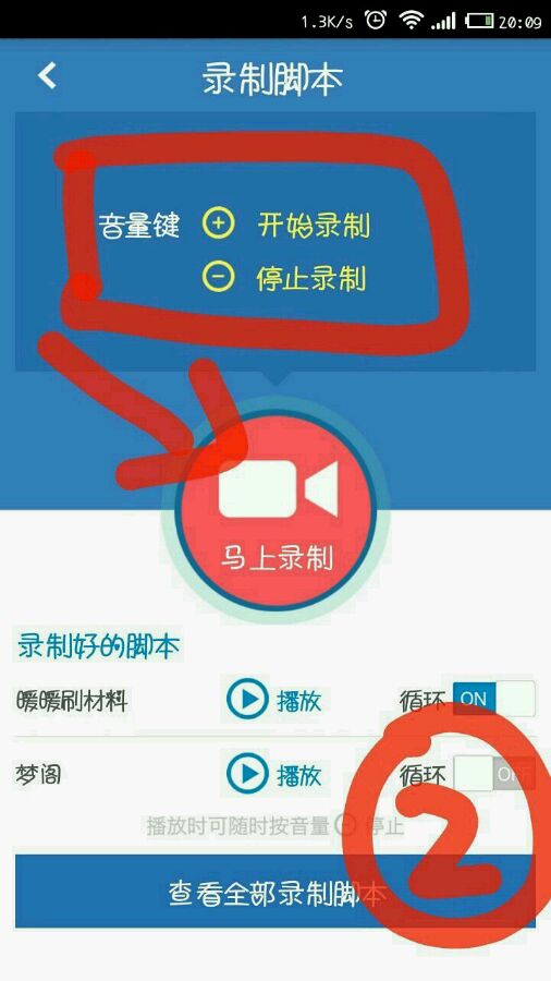 ②点击马上录制。红框框里是录制开始和停止的按键,音量加开始,音量减结束。