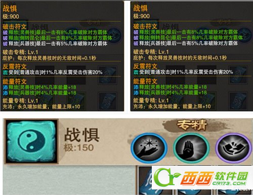 战惧符文单职业26个符文,16个凹槽。看似简单的符文效果,实则是很难选择,建议大家以能量和破敌为主,若以后激活了火尾虎可考虑替换能量,当做PK奇招来使用;