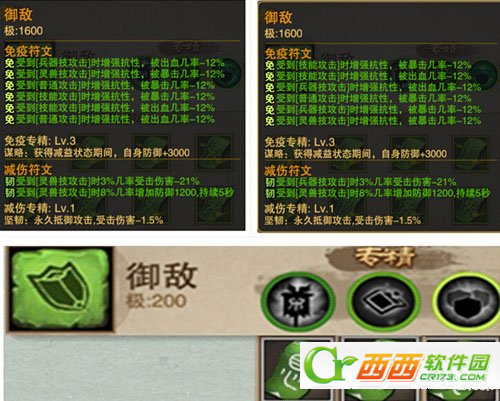剑豪和猎侠:如果选择培养御敌,免疫符文绝对是首选,因为免疫符文一共就8个符文,专精又是加的是防御,皮脆是猎侠和剑豪的硬伤;