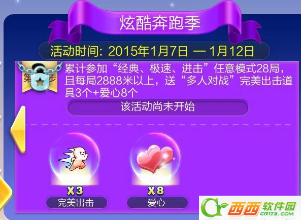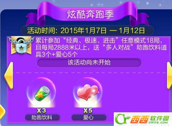 2.累计参加”经典、极速、进击“任意模式18局,且每局2888米以上,送”多人对战“助跑饮料道具3个+爱心5个