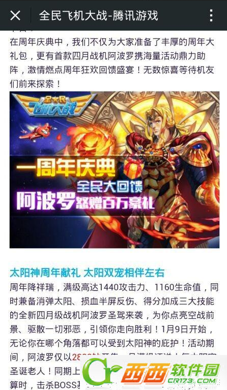 全民飞机大战是一款经典的飞行射击类游戏,之前为大家介绍的全民飞机大战阿波罗战机将于1月9日正式上线了,不仅如此,随之而来的还有许多打折活动在等着大家哦,具体详情,来看看小编为大家带来的详细介绍吧!