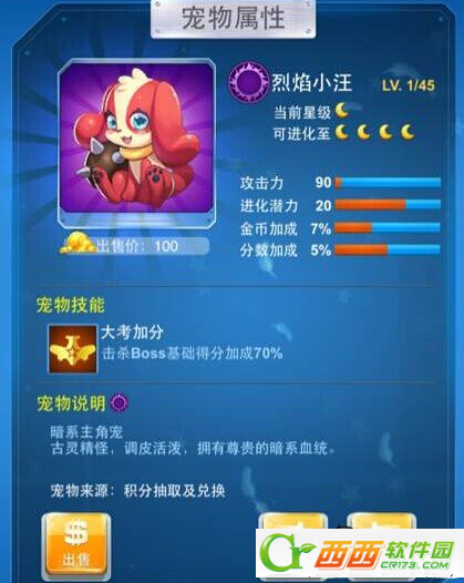 当然这只是一星太阳的属性,升到满级4星攻击力会到1200为止。不过要想升到满级也不容易,需要同样的太阳宠物升级。