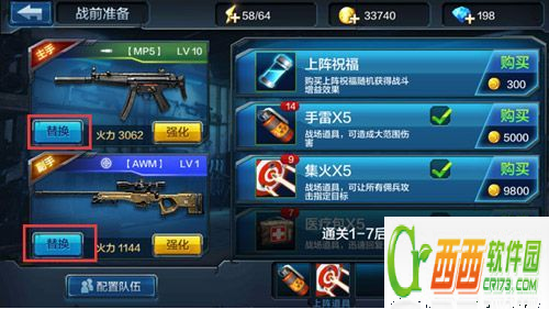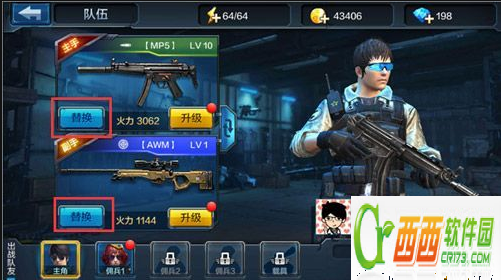 这时在界面里有两个武将展示,分为主手和副手,也就是说在游戏中我们可以通过主手和副手切换来切换枪支,这个时候点击想要替换掉武器下方的替换,进入我们的武器库选择更为强力的枪械。当然还有另外一种方式就是在玩家要进入副本时,会再一次确认武器,这个时候我们可以根据关卡的难度、敌人选择枪械、道具。