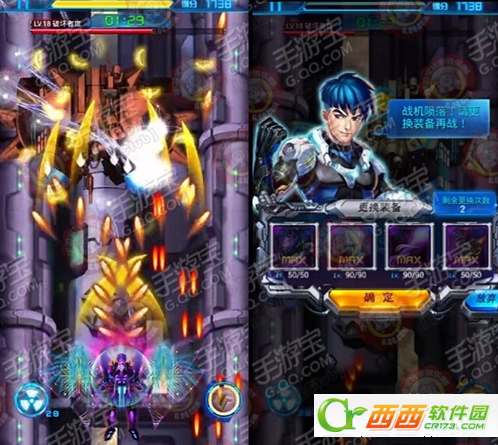 玩家替换整套装备(战机+护甲+副武器+僚机)后,在更换装备界面将整套装备点亮后点击确定,消耗1次更换装备次数,然后新飞机飞入画面,游戏继续,燃料计时2分钟倒计时,血量恢复至100%,直到再次时间耗尽或血量减少至0。