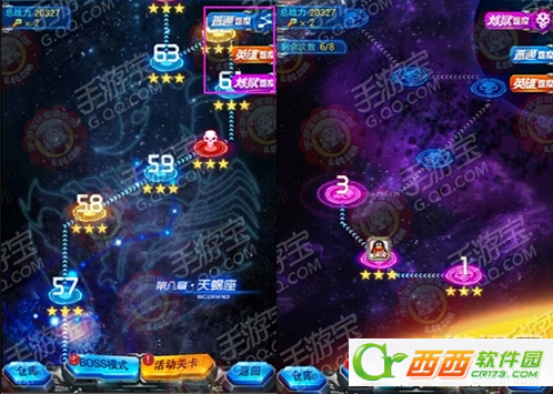 版本更新后,在闯关模式右上角,原有的普通模式、英雄模式下方增加新的紫色按钮“炼狱模式”,点击进入后开启新的星图!