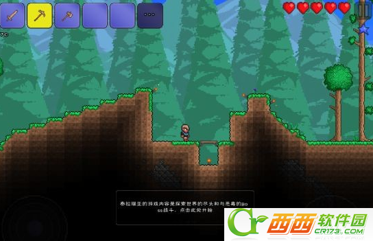 到了腐地,一大片的腐化石砌成的大坑,慢慢往下挖,同时注意左右的通道,会有几个被石头围起来的暗影之球和一大堆的恶魔祭坛。去把暗影之球砸了,记住砸完第3个腐地的BOSS世界吞噬者就会出现,运气好的话暗影之球里能砸到好装备,先砸2个,然后再在第3个球附近挖一个大一点的空间,稍微高一点。武器装备矛吧(前面地下探索足够的话HP差不多能有300左右),砸完第3个马上跑到自己挖的那个空间,用爪子把自己吊在上面然后不停的向下戳BOSS就行了。你也可以用炸弹炸,算好距离,别把自己炸死了。BOSS在地里穿墙钻来钻去,但有高度限制的。再手残一点就在那弄个复活点。