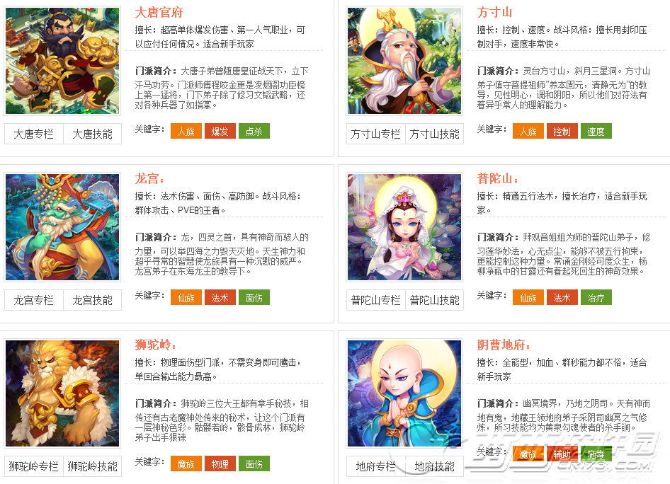 小编注:男怕入错行,女怕嫁错郎,玩游戏就怕选错职业。瞧一瞧,看一看,了解一下我到底最适合玩哪种职业呢?手游版目前的职业共有6个:大唐官府、方寸山、龙宫、普陀山、狮驼岭、阴曹地府。