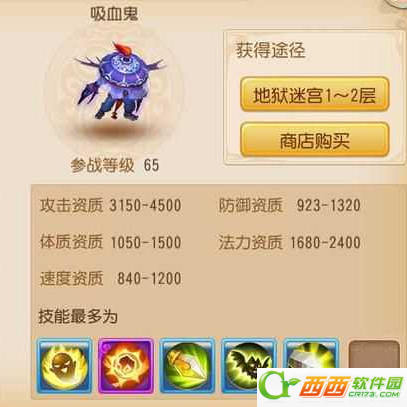 在梦幻西游手游中吸血鬼,是人物角色65级常用的宠物之一,自带了吸血、突进、鬼魂,可以考虑给它配置一个连击。