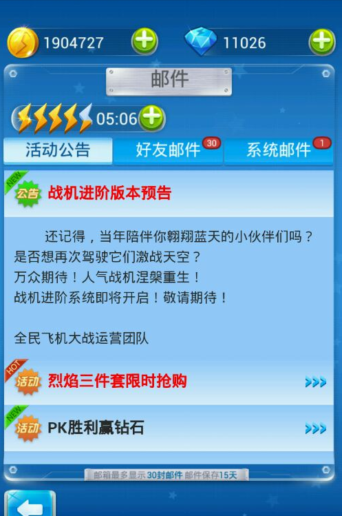 全民飞机大战自上市以来不断的更新使得当初陪伴我们的小飞机们都沉睡在仓库底了,要想赢要想拿高分只有不断买新飞机,新宠物等,玩家也没办法毕竟自己的爱机“硬件实在太差”,不得不随大流整一个当前版本最厉害的。现在不用担心了,昔日的爱机重见天日的时刻来临了——战机进阶系统即将开启!