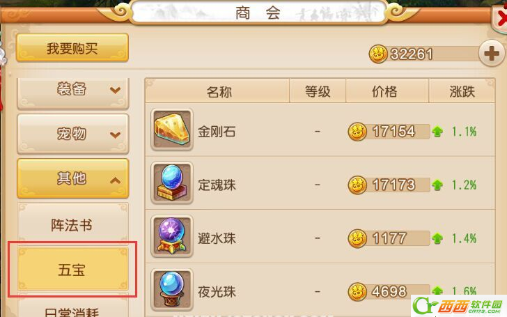 在日常的各种任务,师门贡献点兑换,各种活动任务,挖普通宝图中我们都有几率获得五宝。而除了自己慢慢凑齐一套五宝之外,我们还可以在商会中使用金币购买五宝。