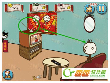 1.将电视上的天线拖到坑爹男的头上,坑爹男就会开始变身为天线宝宝,感觉自己萌萌哒。