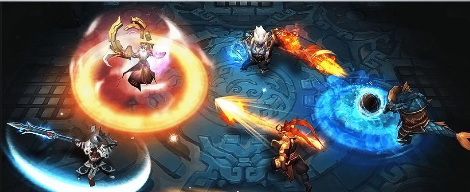 2、双方战队成员按出场顺序进行车轮战,当一方3个英雄全部死亡回合结束;下一回合开始时,胜方保存剩余血量,败方将派出下一位成员,直至一方所有成员失败,则结束战队对战。