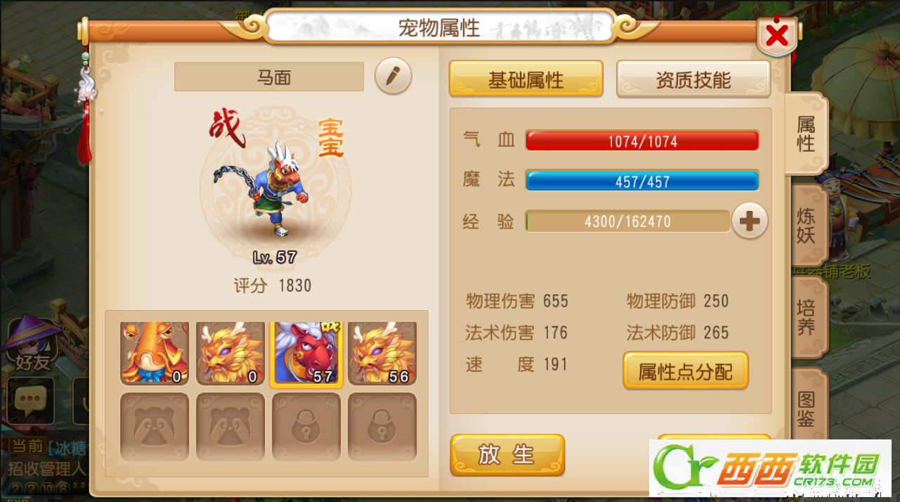 然后在宠物界面中,找到被锁的宠物栏点击一下